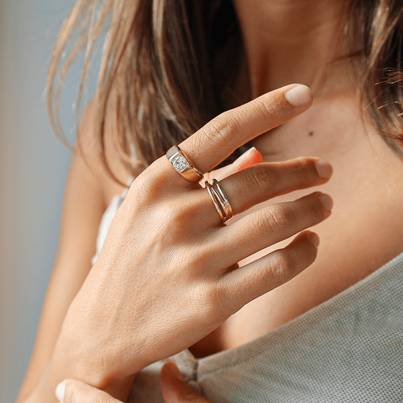 Anel em Ouro Amarelo de 19kl adornado de elegante zircónia