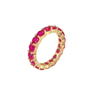 Anel Memória em Prata Dourada cravejado de elegantes Zircões Rosa.