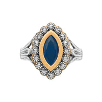 Anel Oval em Prata 925 e Ouro 9kl com Pedra Azul Royal