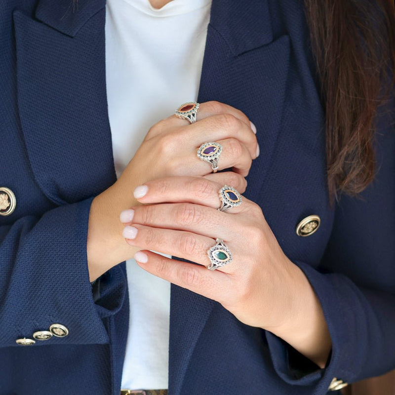 Os apontamentos em ouro de 9 quilates, estrategicamente colocados, oferecem um toque de luxo e sofisticação ao anel. Estes detalhes em ouro, mesmo subtis, adicionam uma camada de elegância e distinção à peça, elevando ainda mais o seu apelo estético.