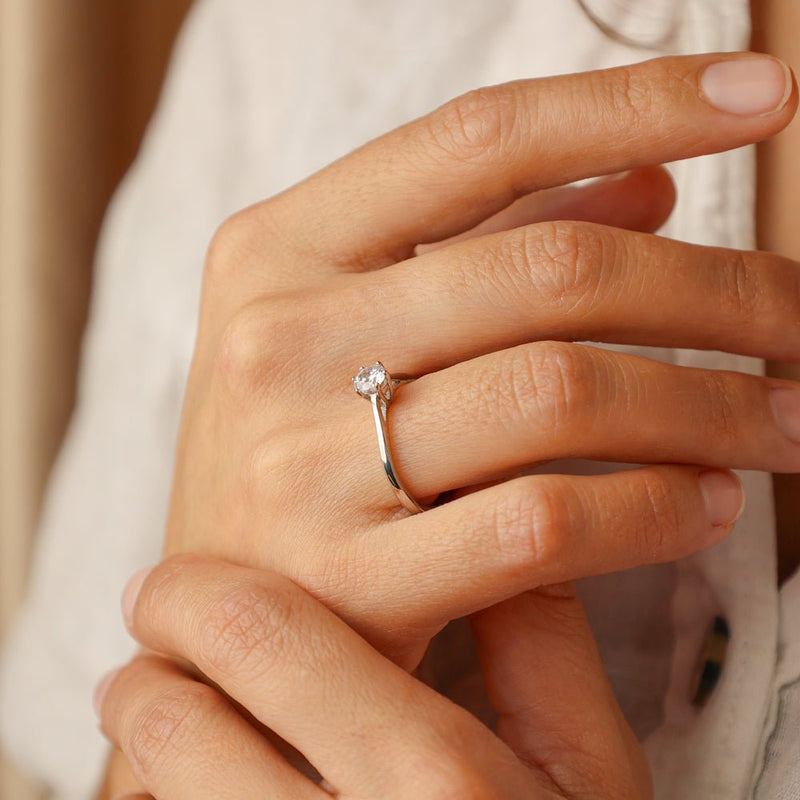 Anel Solitário em Prata 925 com Zircónia assente em 6 Garras – Brilho e Segurança em Harmonia