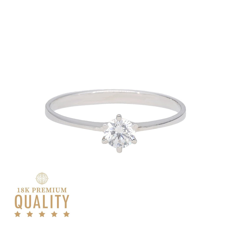 Anel Solitário em Ouro Branco de 18kl com elegante zircónia assente em seis garras.
