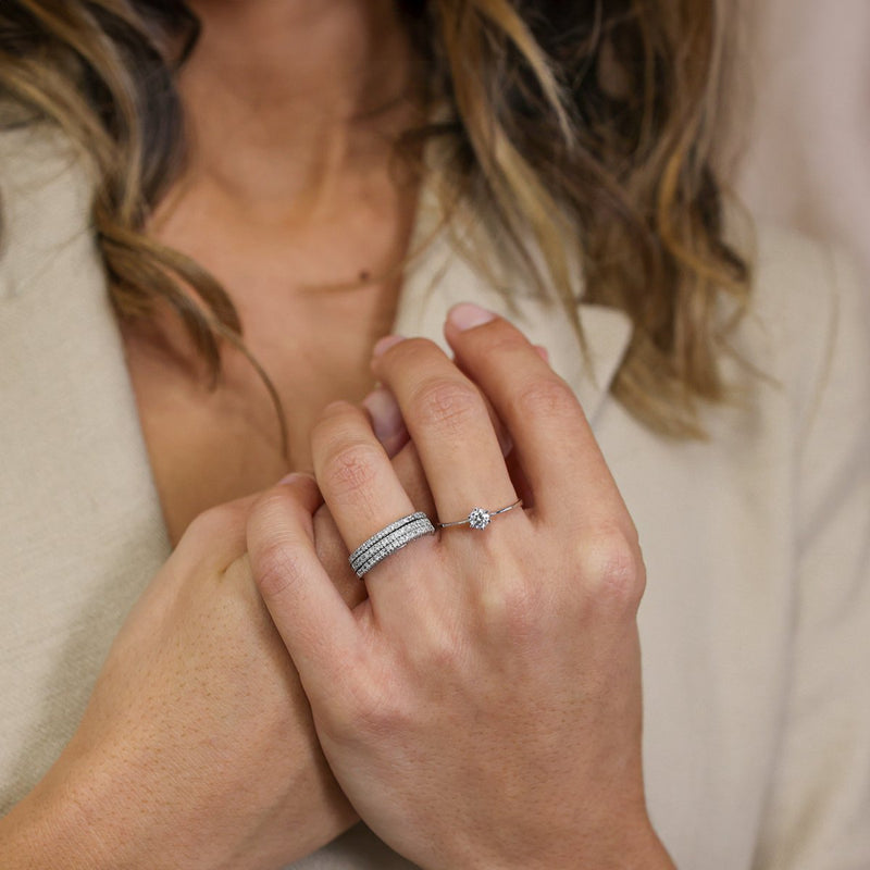 O Anel Solitário em Ouro Branco de 18kl com Zircónia é uma peça de joalharia que personifica a elegância e a simplicidade refinada. Este anel apresenta uma zircónia deslumbrante, assente com precisão em seis garras delicadas.