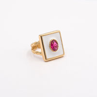 Anel em Prata de Lei (925) e Esmalte, adornado de Zircónia de Cor Rubi