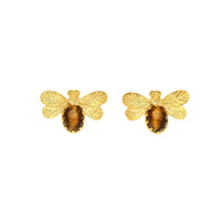 Brincos Abelha em Prata Dourada com Pedra Olho de Tigre