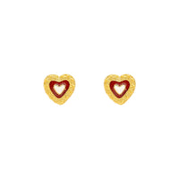 Encante-se com estes brincos em forma de coração, uma joia delicada e cheia de personalidade. Fabricados em prata dourada, eles combinam o brilho sofisticado da prata dourada com o charme vibrante do esmalte vermelho e branco, criando um contraste marcante e elegante.