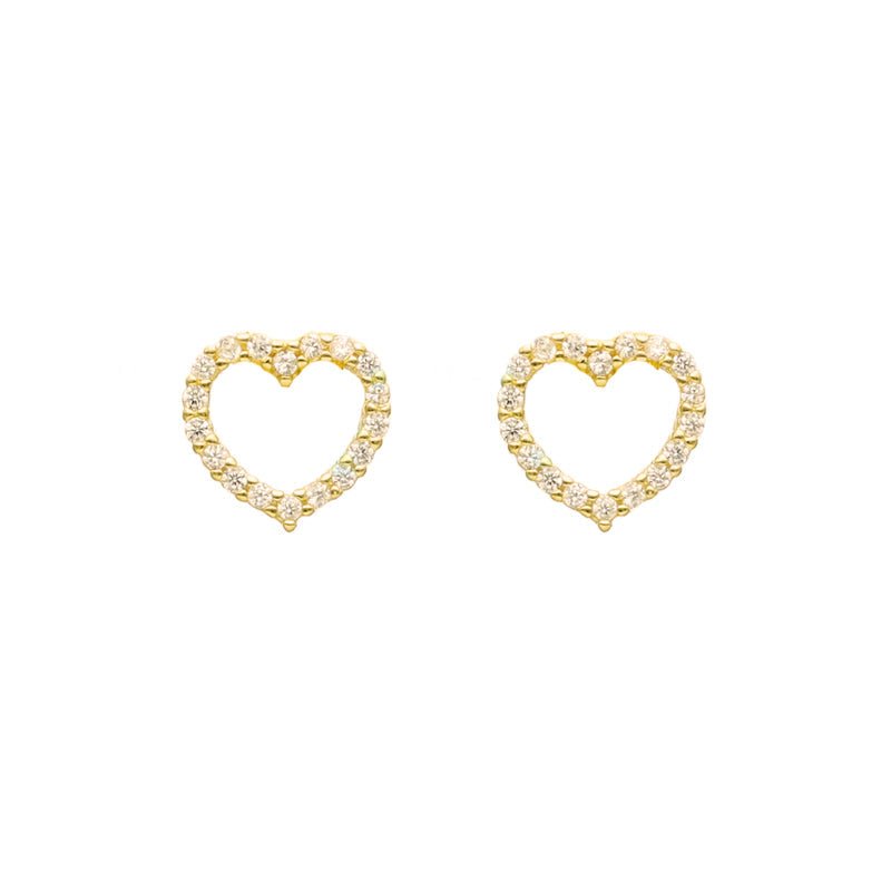 Brincos em Prata 925 Dourada com Coração cravejado de elegantes Zircónias