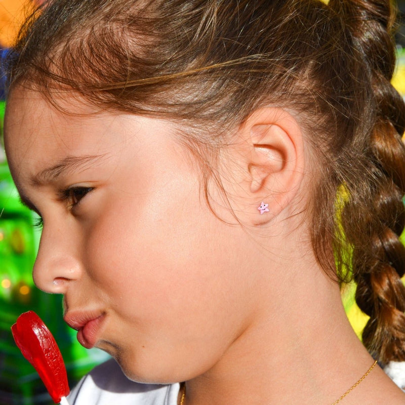 Brincos de Criança em Prata 925 com Estrela em Esmalte Rosa