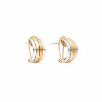 Brincos Meia Argola Cizelada em Ouro Amarelo e Ouro Branco 19kl