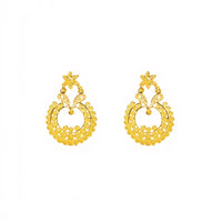 Os Brincos Oriente D’Alma refletem a harmonia entre delicadeza e detalhe artesanal. Criados em prata dourada, apresentam uma pequena flor que assenta na orelha, de onde surge um pendente circular trabalhado com minúcia, evocando padrões exóticos e elegância intemporal. O design equilibra suavidade e estrutura, resultando numa joia leve, versátil e cheia de personalidade.
