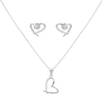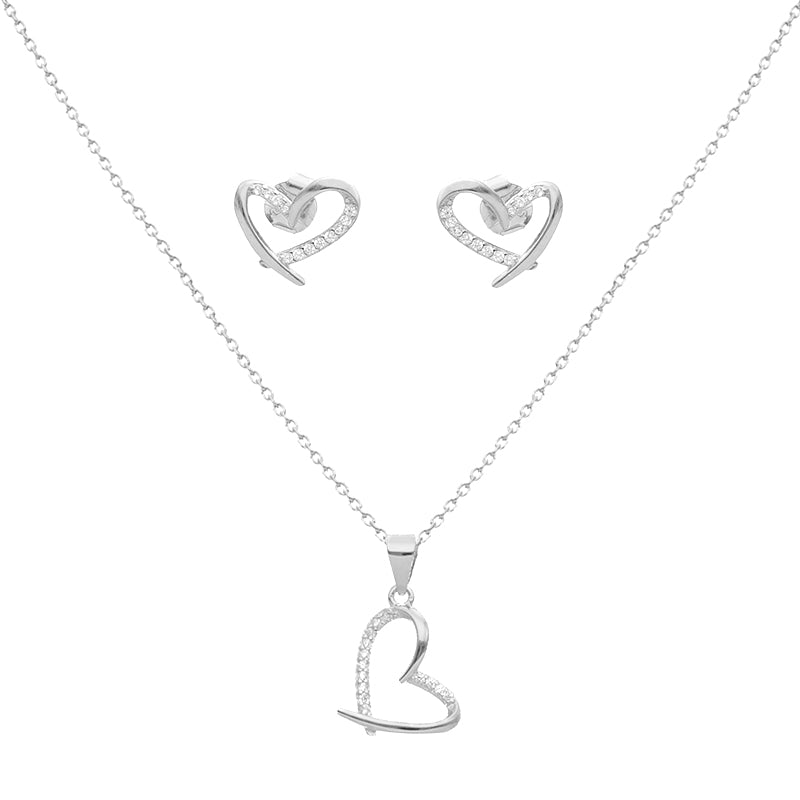 Conjunto Fio e Brincos em Prata com Coração Estilizado e Zircónias