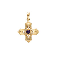Cruz Trabalhada em Ouro de 19.2kl adornada de elegante Pedra Azul.
