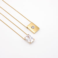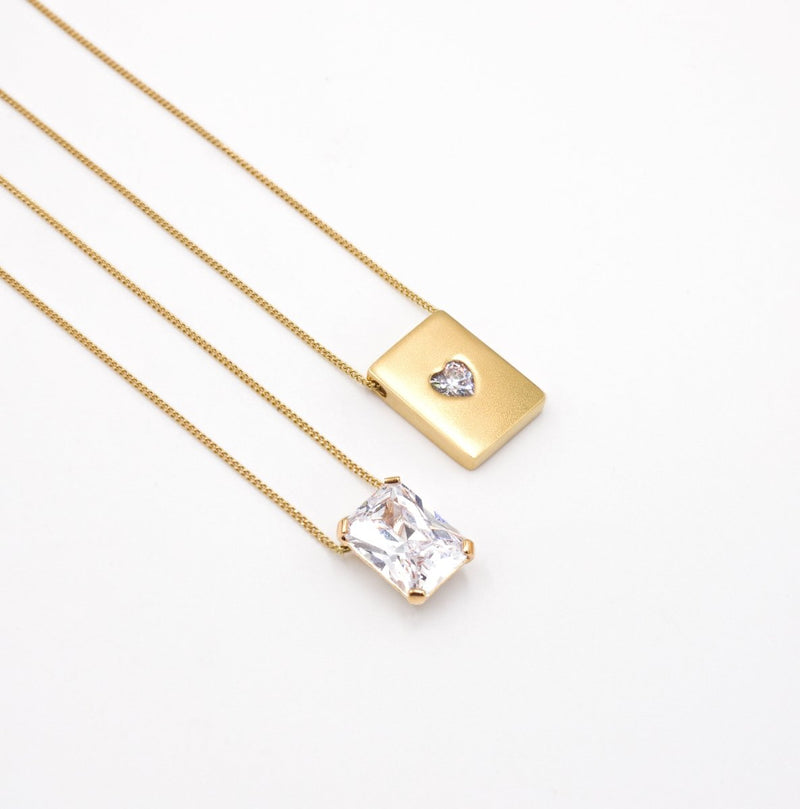 Escapulário em Prata 925, plaqueado a Ouro de 24kl, adornado de Zircão e de Medalha com Zircónia em formato de coração abraçado no prenúncio de um futuro risonho.
