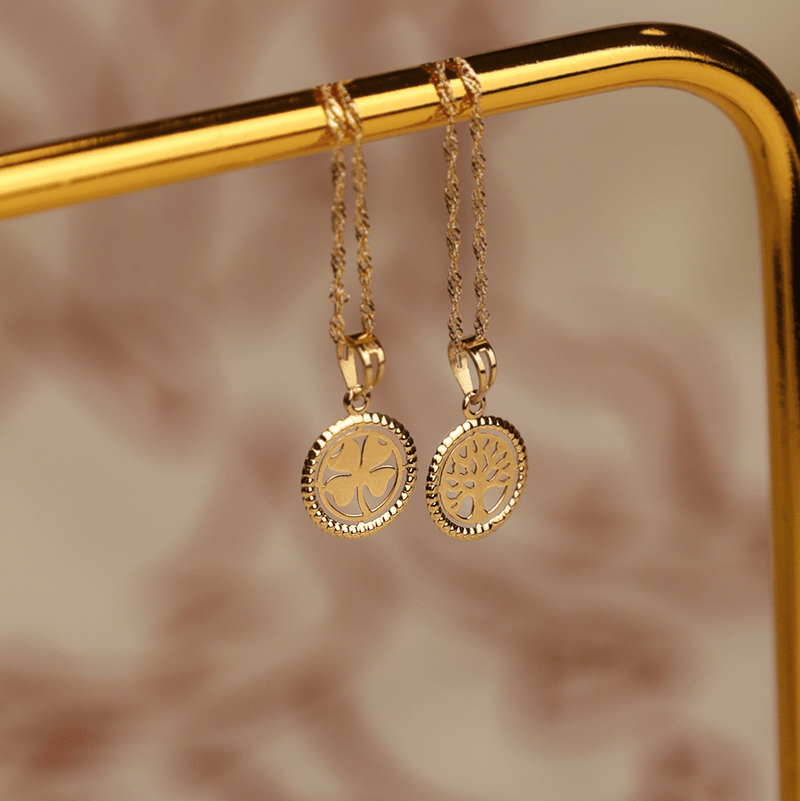 A medalha em forma de Árvore da Vida, também em ouro de 19 quilates, é um símbolo universal de crescimento, força e conexão com o mundo ao nosso redor. Este colar é ideal para quem busca uma peça que represente valores pessoais e espirituais, ao mesmo tempo que adiciona um toque de estilo refinado ao dia-a-dia ou a ocasiões especiais. Combinando simbolismo e elegância, este fio é uma escolha perfeita para qualquer ocasião.