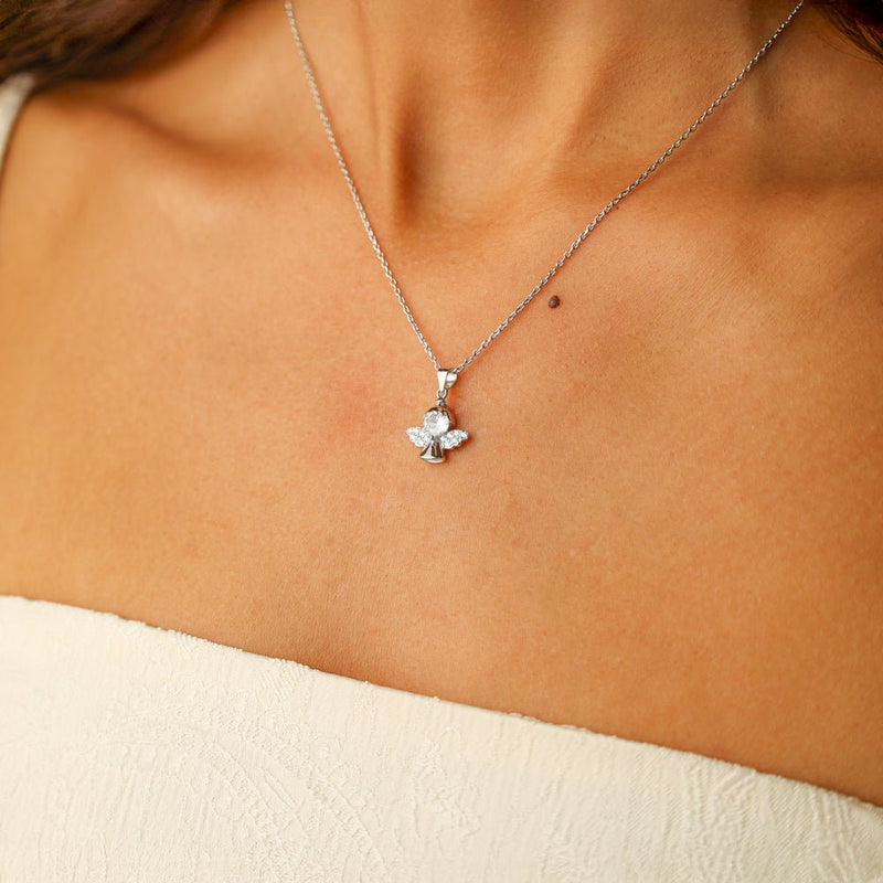 Fio em Prata (925) adornado de pendente Anjo cravejado de Zircónias