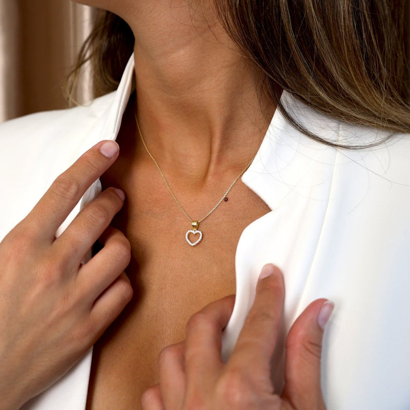 O pendente em forma de Coração apresenta uma interpretação moderna e estilizada do clássico símbolo do amor, proporcionando uma estética versátil que pode ser usada em diversas ocasiões. As zircónias, cravejadas de forma estratégica, acrescentam um brilho sutil, realçando a beleza do coração.