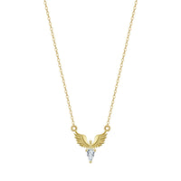 Este fio em prata de lei 925 com banho de ouro apresenta um delicado pendente em forma de pomba, símbolo de paz, amor e esperança. A zircónia acrescenta um brilho subtil e elegante, valorizando o design com um toque sofisticado.