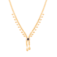Esta deslumbrante gargantilha de ouro com safira é uma joia única que combina tradição e modernidade com um toque de requinte absoluto. No centro, uma safira azul intensa é delicadamente ladeada por zircónias brilhantes, criando um contraste elegante e sofisticado. A partir do conjunto central, dois segmentos da malha estendem-se em forma de pendentes, terminando em delicadas lágrimas de ouro, conferindo movimento e graciosidade à peça.