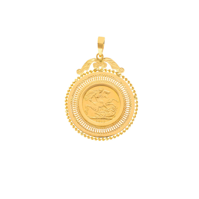 Libra Rei Jorge V (1912) em Ouro de 22kl com São Jorge no Verso, adornada de Aro estilo Dola em Ouro de 19.2kl