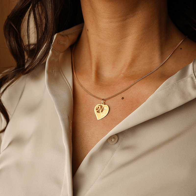 Medalha Coração em Ouro 19kl com Letra N (1.7cm)