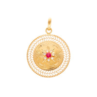 Medalha Dona Flor em Ouro 19kl com Rubi e Zircónias