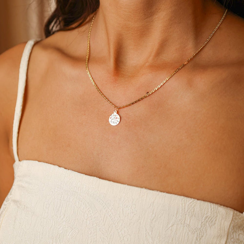 O contraste entre o brilho nobre do ouro e as cores suaves do esmalte floral confere à peça um visual intemporal e sofisticado. Ideal para quem valoriza peças sentimentais com um toque clássico, esta medalha é mais do que uma joia: é um registo precioso de memórias afetivas que perduram no tempo.