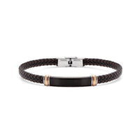 Pulseira Aspen em Couro Preto e Castanho com Chapa