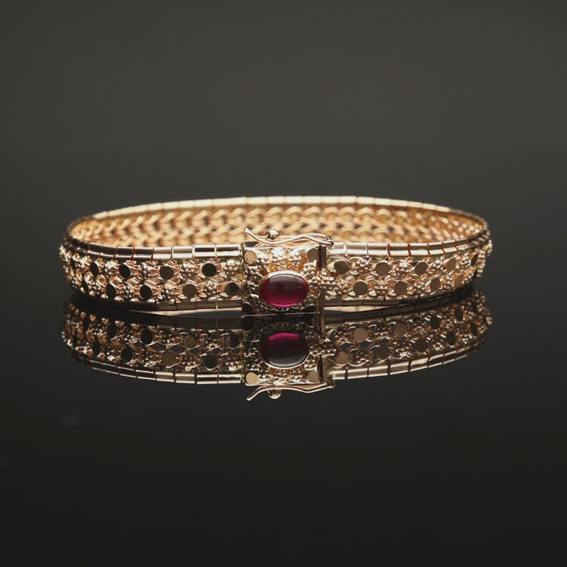 Pulseira Baronesa em Ouro 19kl com Caramujos e Rubi (19cm)