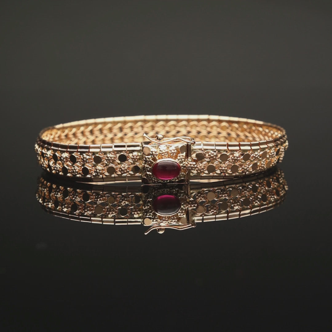 Pulseira Baronesa em Ouro de 19,2Kl com Rubi e bracelete toda adornada de elegantes caramujos