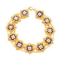 Pulseira Caramujos em Ouro de 19.2kl adornada de Motivos Florais em Esmalte Azul e Branco.