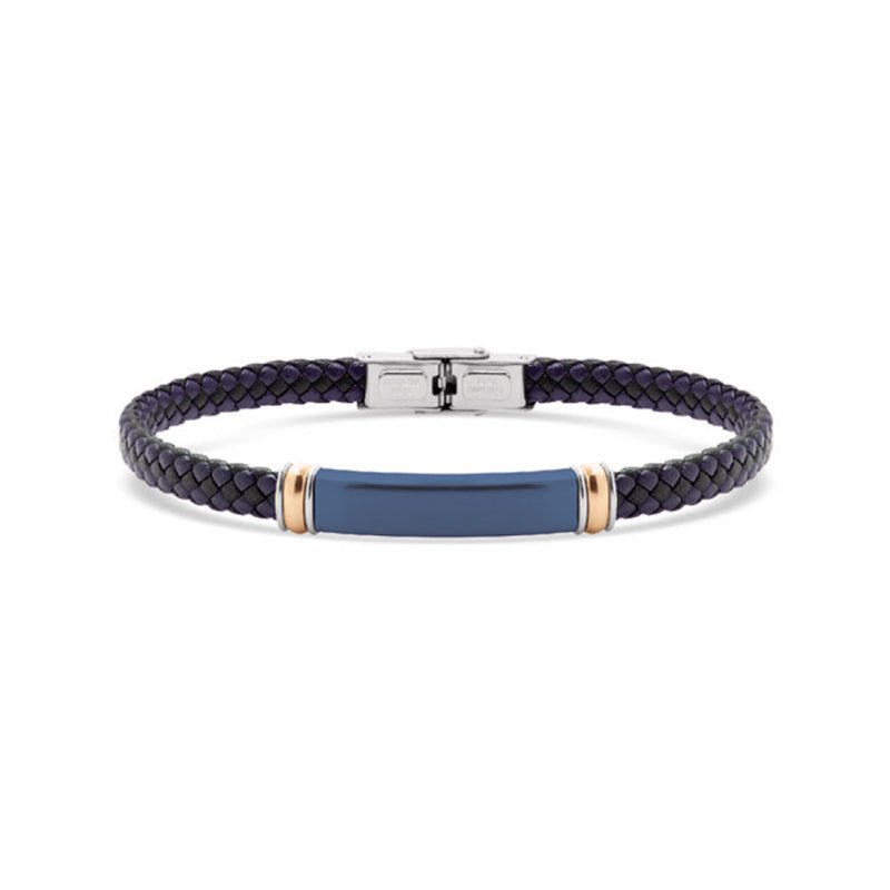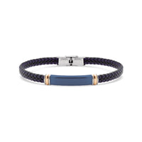 Pulseira Nautilus em Couro Preto e Aço com Chapa Azul