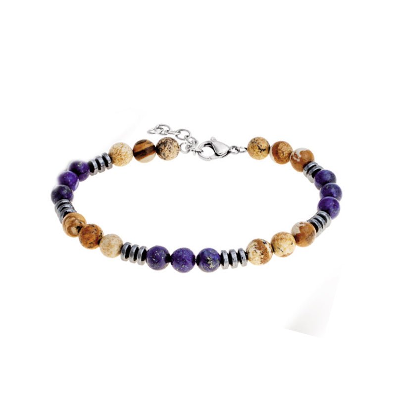 Pulseira Universus em Aço com Pedras Naturais Castanhas e Azuis