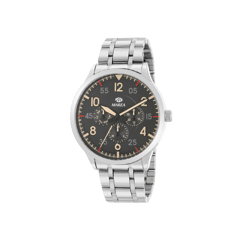 No pulso, o Relógio Chromax apresenta-se como uma presença equilibrada — nem demasiado discreto, nem exagerado — pensado para quem valoriza funcionalidade sem abdicar do estilo. A caixa metálica de 40 mm de diâmetro confere solidez, enquanto o mostrador em tom cinzento, complementado por toques de bege e vermelho nos ponteiros, adiciona um carácter moderno e dinâmico.