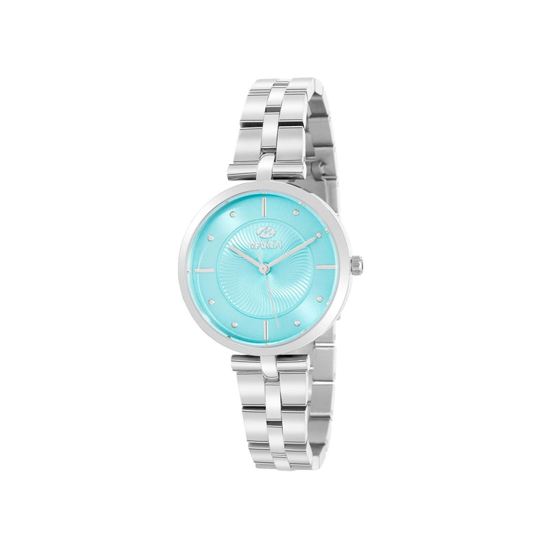 A bracelete em aço inoxidável confere durabilidade, conforto e um acabamento refinado, tornando-o perfeito para o uso diário. Equipado com movimento japonês de 3 agulhas, assegura uma leitura precisa das horas com fiabilidade.
