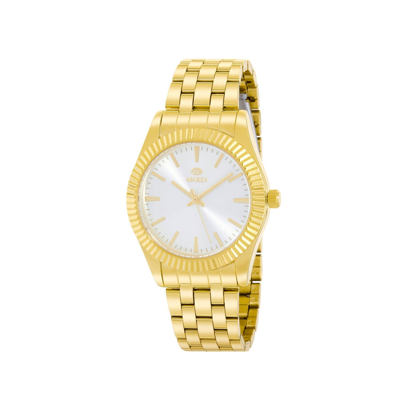 A sua bracelete em aço inoxidável oferece resistência e conforto, complementando o visual com um brilho subtil e elegante. Equipado com um movimento japonês de 3 agulhas, garante uma leitura precisa das horas, ideal para o ritmo dinâmico do dia a dia.
